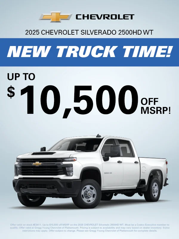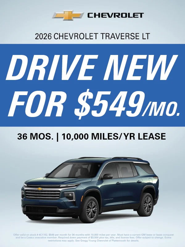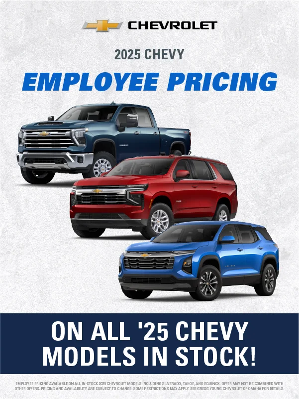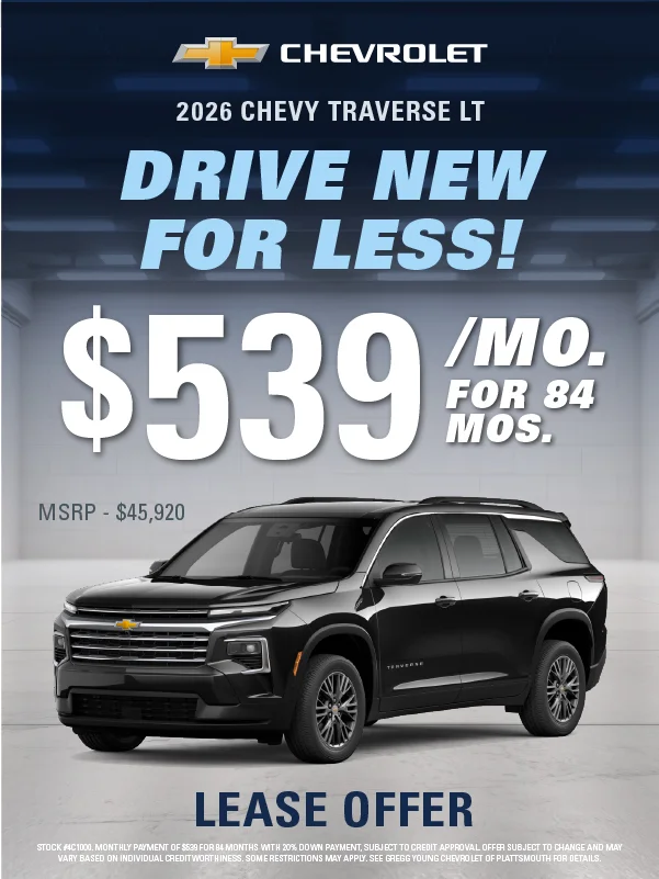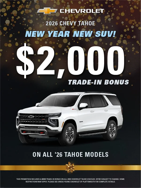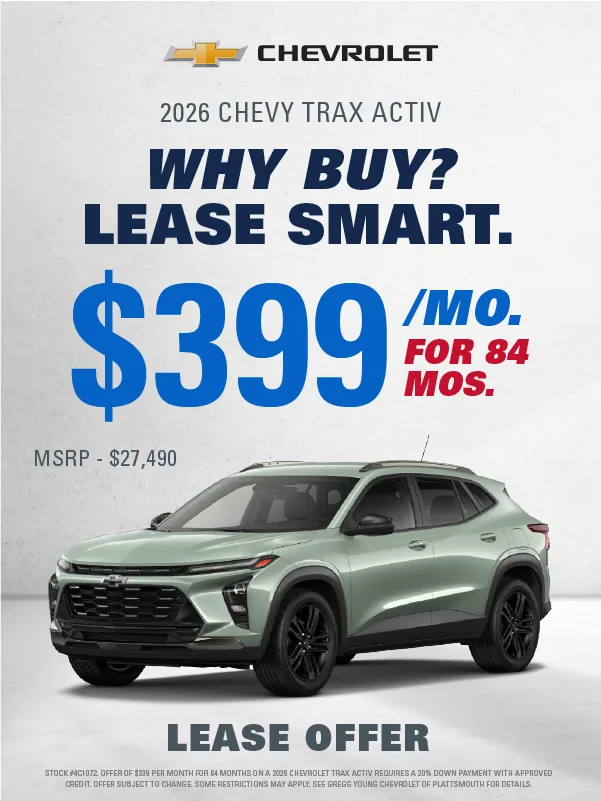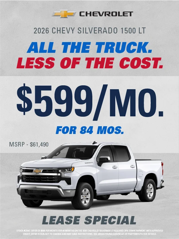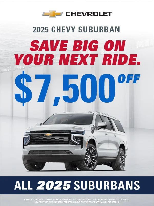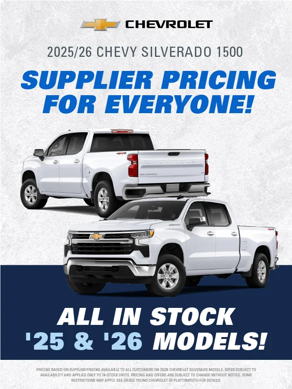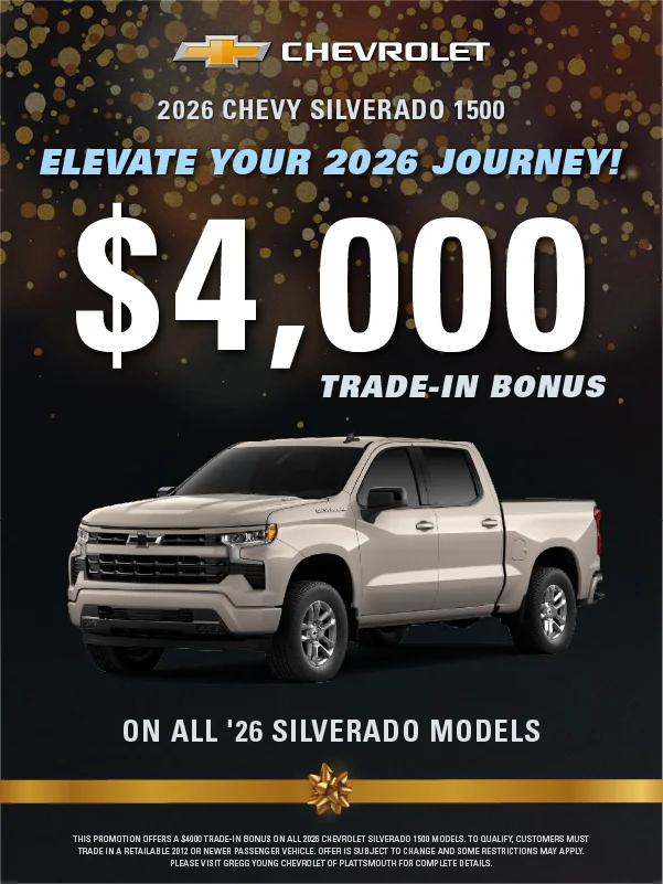 At Gregg Young Chevrolet of Plattsmouth, we’re proud to serve as your trusted Chevy dealer in Eastern Nebraska, offering a complete lineup of new Chevrolet cars, trucks, and SUVs, plus a wide selection of used and certified pre-owned vehicles. Conveniently located near Omaha, Bellevue, and Council Bluffs, we combine small-town hospitality with big-city savings to give you the best of both worlds.