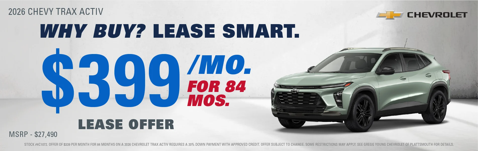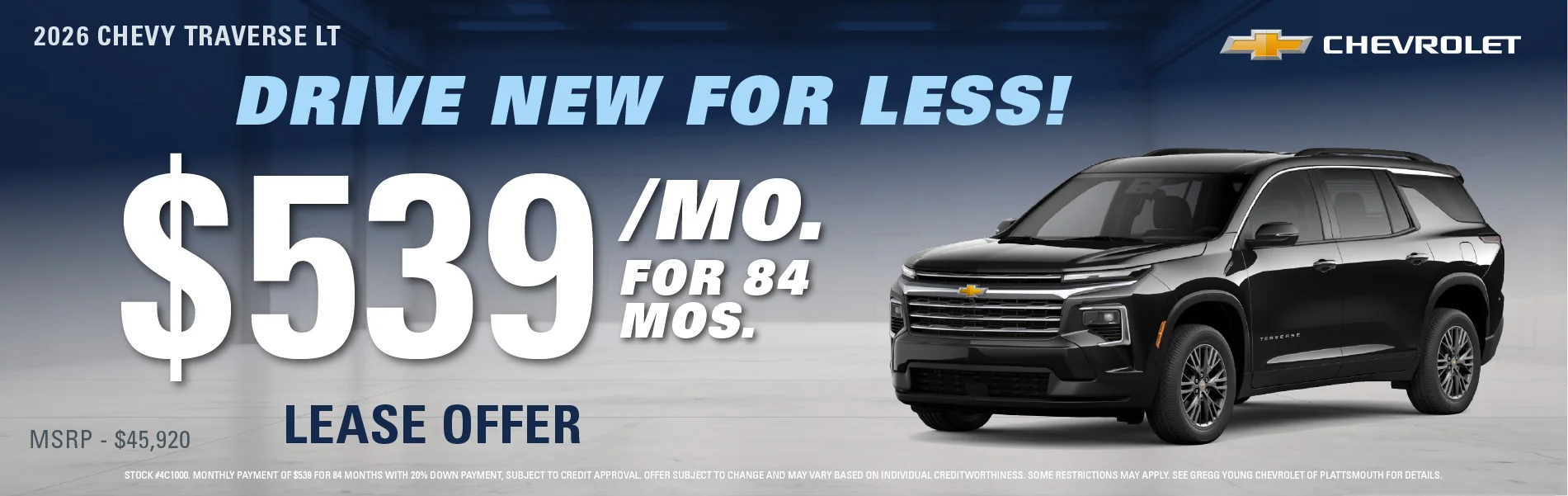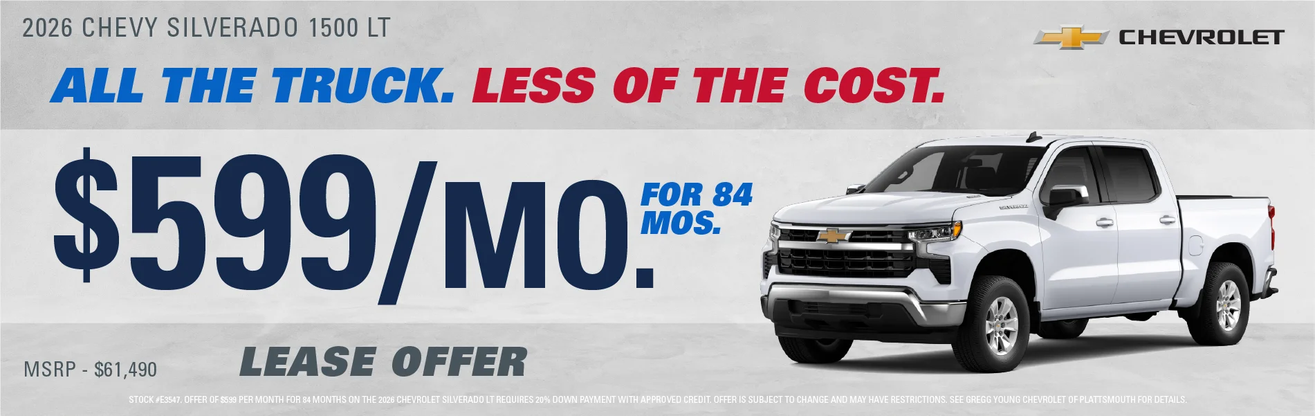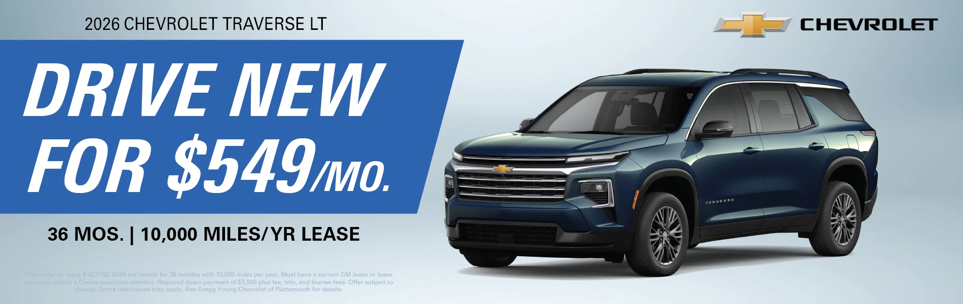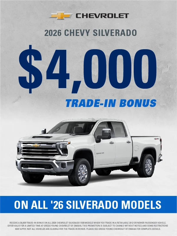 At Gregg Young Chevrolet of Plattsmouth, we’re proud to serve as your trusted Chevy dealer in Eastern Nebraska, offering a complete lineup of new Chevrolet cars, trucks, and SUVs, plus a wide selection of used and certified pre-owned vehicles. Conveniently located near Omaha, Bellevue, and Council Bluffs, we combine small-town hospitality with big-city savings to give you the best of both worlds.